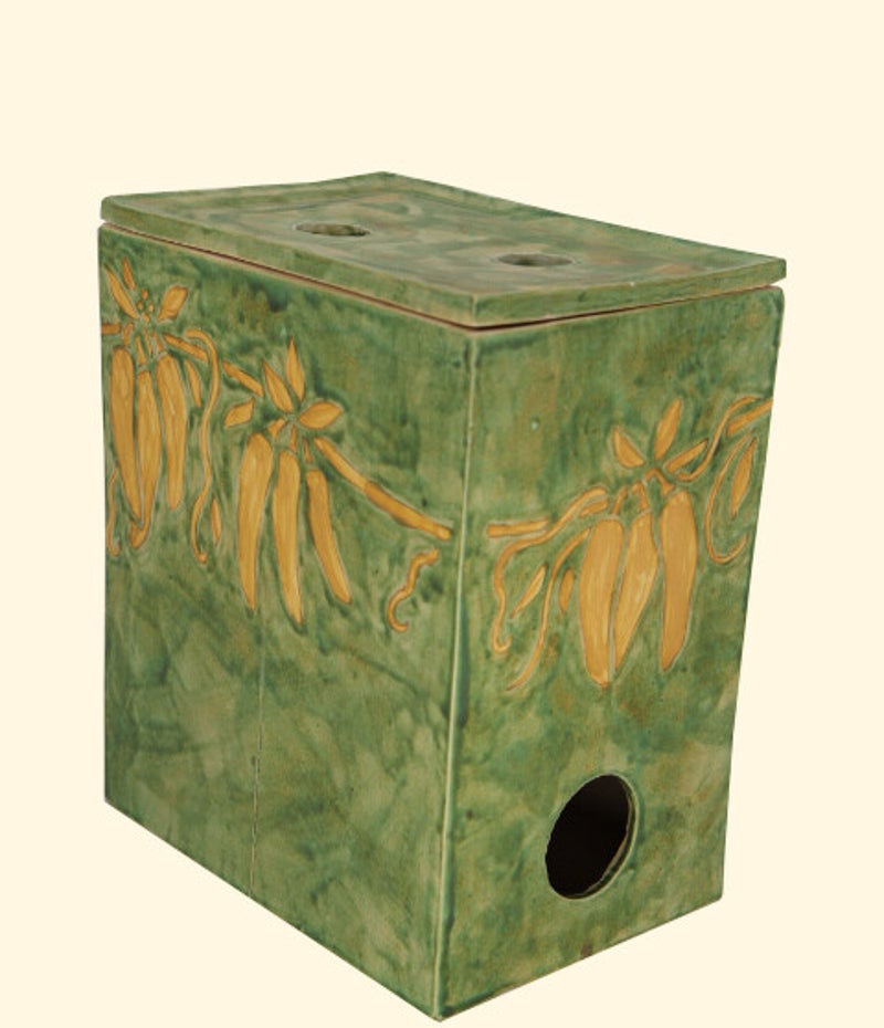 Verberg je kartonnen doos (met een zak wijn of sap of olijfolie) in een charmante keramische box.